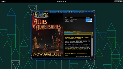 The launcher gets stuck at 88% patching dat files and then it fails. I have tried different solutions I’ve read such as: using steam launcher, using standalone launcher trought lutris, using repair data option; I have tried deleting dat/datx files, deleting “downloads” and “forward” directories, limiting download speed of the game, changing game proxy option; I have tried diferrent versions of proton, protonge, wine. Nothing works. Please help me.